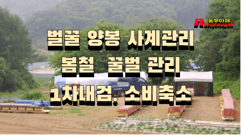 봄벌 관리에 있어 가장 중요한 것이 바로 봄벌관리라고 다시 한번 이야기를 한다. 봄벌을 잘못관리를 하면 1년 농사를 망치는 큰 소해를 본다. 봄벌 관리상 가장 중요한 것이 소비축소라고 본다. 겨울철 월동포장을 할 때 (외)을 들어 10매 만상벌로 월동을 무사히 났다고 보면 이른 봄 1차 내검을 할 때 그 벌들이 모두 있는 것이 안이다 이때쯤 대면 한 2매~3매 많으면 4매로 본다 하지만 이른 봄에는 여름벌처럼 소비에 벌들이 착봉이 엉성하게 붙어다면 큰일이다. 그래서 봄벌은 과감하게 축소을 하는 것이다. 양봉에는 2가지 온도가 있다 바로 정태온도와 동태온도다. 정태온도는 벌들이 산란과 유가을 하지 않는 온도고 동태온도는 33℃~35℃을 유지하여야 여왕이 산란을 하고 유가을 할 수가 있는 온도라고 본다. 벌을 2매로 축소을 했다고 보면 첫 장에 꿀이 많이 남은 꿀소비장 넣고 두 번째 소비는 상단에 꿀이 조금 있고 하단에는 꿀이 없는 소비를 넣어야 여왕이 산란을 한다. 이렇게 2매 벌로 축소을 했다면 2매 벌 소비에 벌들이 꽉 밀집된 것을 볼 수가 있다. 격리판이나 나무 사양 기을 소비 뒤쪽에 막아주고 꿀이 적당히 담긴 소비를 한 장 격리판 뒤에 놓아준다. 이것은 먹이가 부족할 때 예비식량으로 사용도 하지만 여왕이 산란을 할 장소가 없다면 이곳으로 넘어와서 산란도 한다. 모든 것이 끝나면 소비 위에 미리 준비한 화분떡을 1kg가량을 올려준다. 물론 소문 앞에는 소금을 탄 생수를 급수기에 담아 소문 안으로 설치를 해준다. 벌통 포장을 월동포장처럼 하는 것을 잊지 말아야 한다.