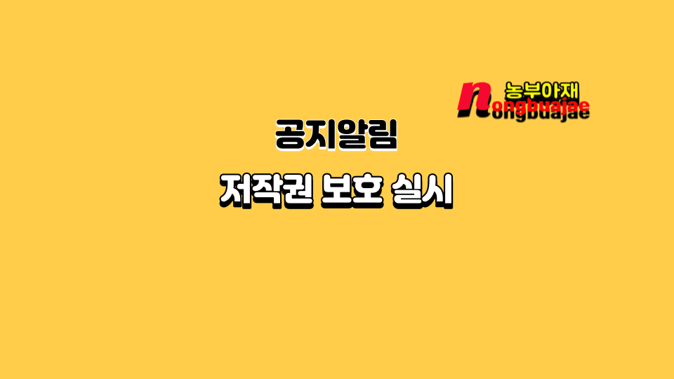 공지알림 저작권 관련 공지 농부아재 2024. 10. 12. 22:03 농부아재 블로그 내 모든 글.사진에 저작권이 있습니다 [모든 저작물에 저작권은 농부아재에 있으며 도용하거나 무단복제하여 재사용하거나 판매시 그에 따른 법적책임과 손해배상이 청구됩니다.] -- 농부아재 -- 공유하기 게시글 관리 농부아재